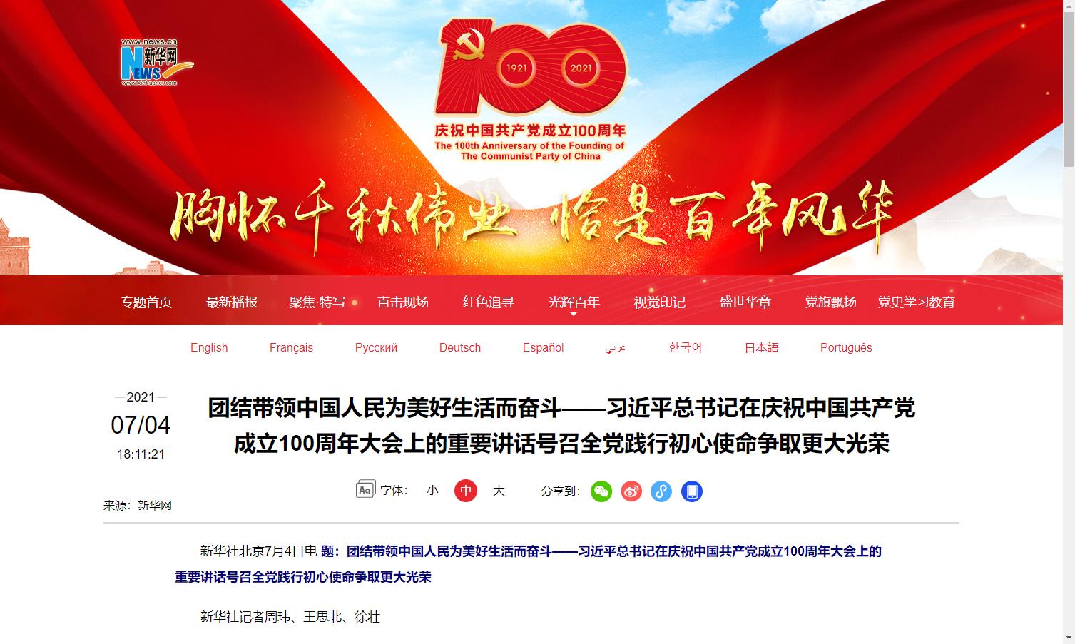 團結帶領中國人民為美好生活而奮斗——習近平總書記在慶祝中國共產黨成立100周年大會上的重要講話號召全黨踐行初心使命爭取更大光榮